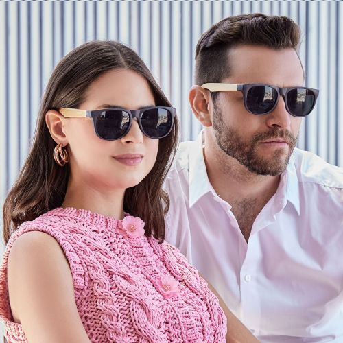 Lentes de sol con protección UV 400. Fabricados con materiales amigables con el medio ambiente, bambú y fibra de trigo. Su diseño estilizado combina elegancia y sostenibilidad, ideal para uso casual o en la playa.