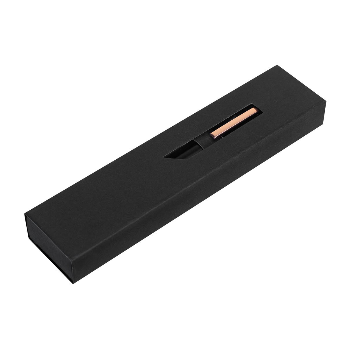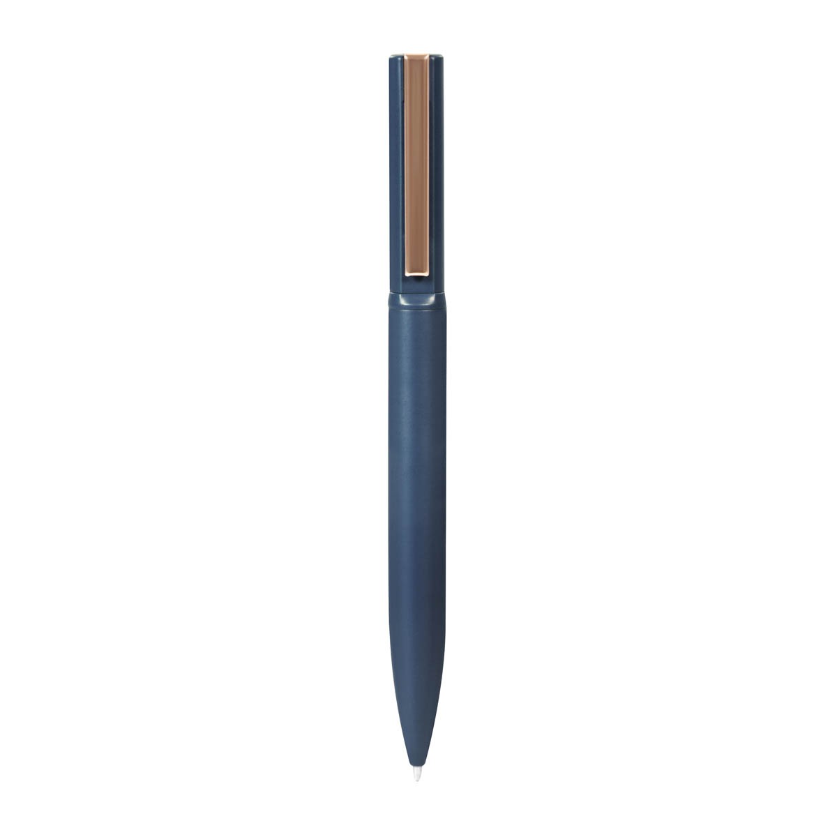 Bolígrafo metálico con terminado mate y clip rose gold. Mecanismo twist. Incluye estuche.