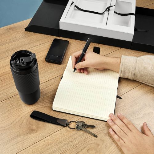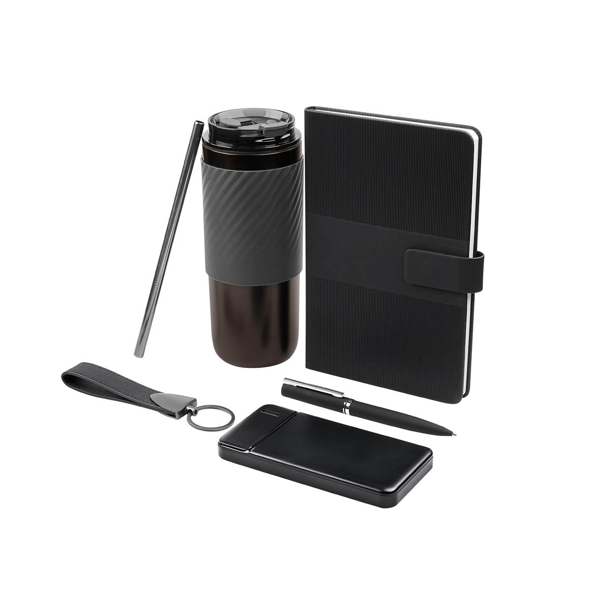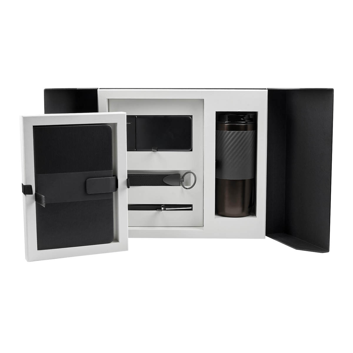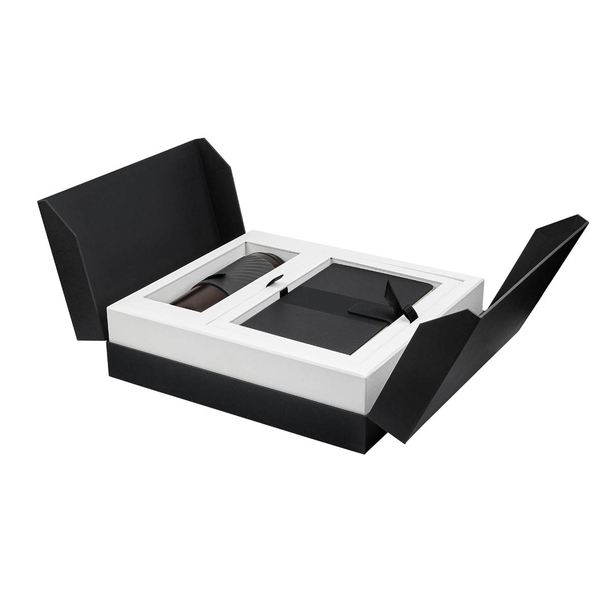 Exclusivo set de regalo. Opción perfecta para un obsequio de alto valor y calidad. Este set viene en una elegante caja negra con solapa de abertura central, lo que no solo proporciona un acceso fácil al contenido, sino que también añade un toque so