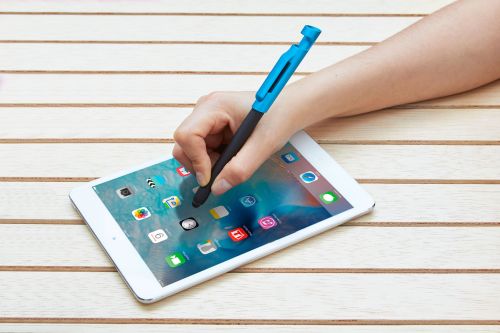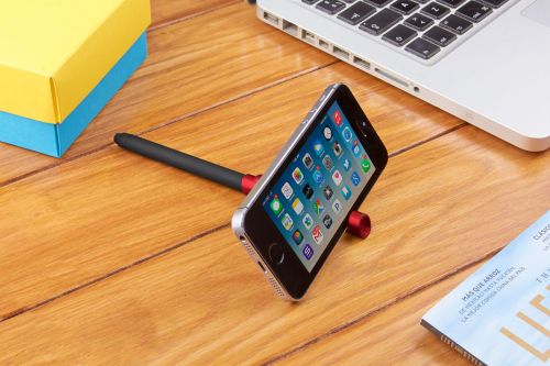 Bolígrafo con touch screen y base para smartphone. Terminado rubber.