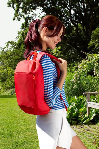Bolsa principal con cierre y bolsa frontal con cierre vertical. Tirantes ajustables y asa de agarre superior. Con capacidad para laptop de hasta 11.