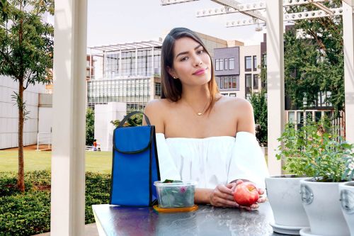 Lonchera con interior metalizado. Bolsa principal con velcro, solapa y asa superior de agarre. Capacidad para 2 latas.