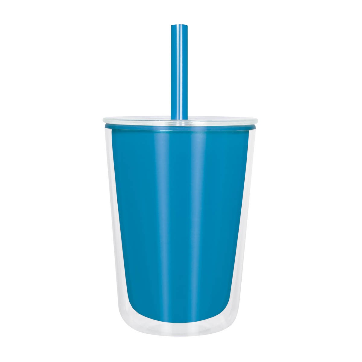 Vaso de plástico doble pared. Su peculiar diseño, presenta una pared interna de color y una pared externa transparente, el cual, le da un aspecto moderno y vibrante. La tapa con cierre push y el popote a juego, añaden originalidad a este vas