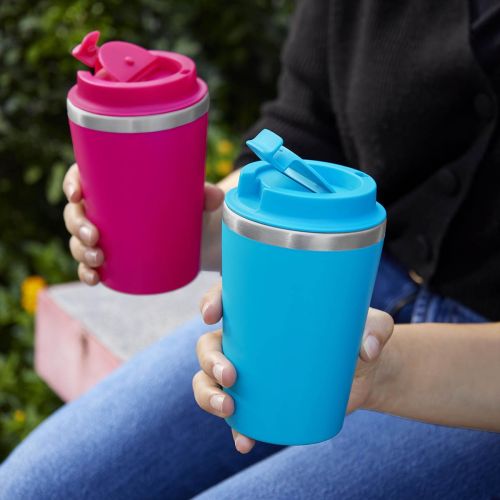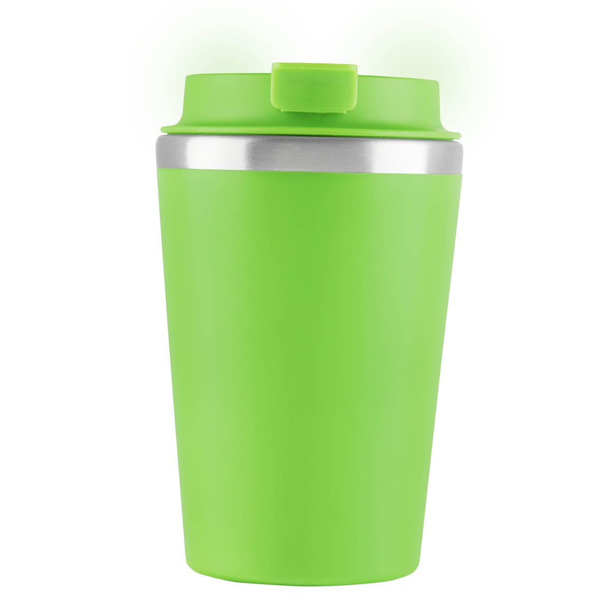 Termo doble pared. Pared interna de acero inoxidable y externa de plástico. Tapa con sistema de rosca que garantiza un cierre hermético. Sobretapa con sistema push que previene derrames. Su elegante detalle metálico, rompe con la monocromía y añade