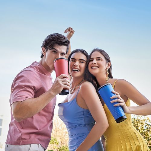 ¡Lleva la emoción de los eventos deportivos al siguiente nivel! Termo equipado con una boquilla especial en la tapa que realiza una doble función; como trompeta para animar tu evento favorito y al mismo tiempo disfrutar de tu bebida preferida. Termo