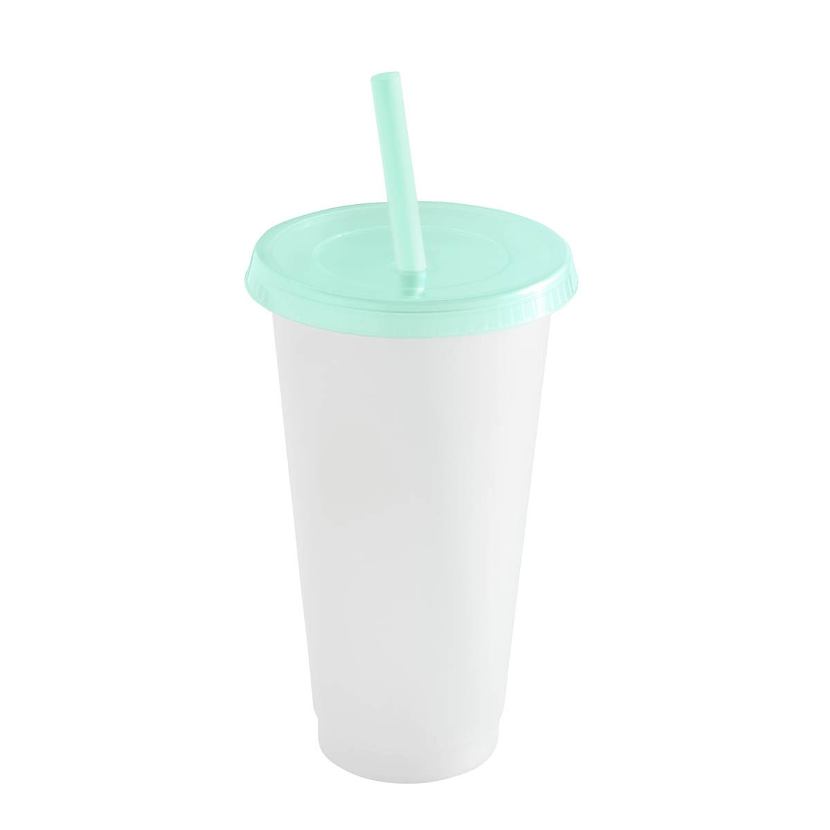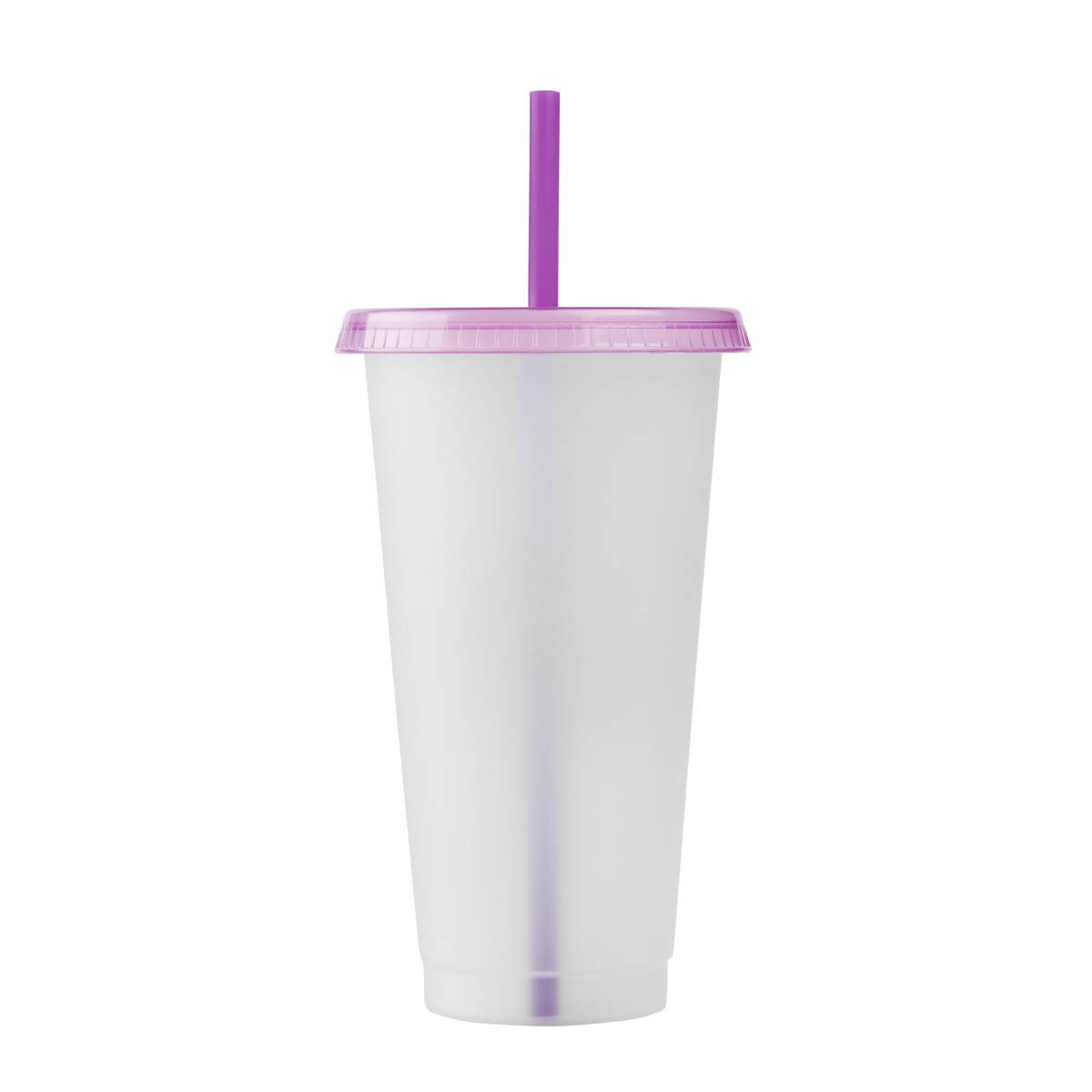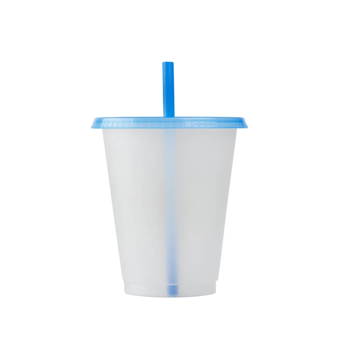 Vaso de plástico de una pared. Añade fantasía y diversión, con el cambio de color al llenar con bebidas frías. Su tapa y el popote coinciden con el tono que el vaso revela al enfriarse, creando un conjunto armonioso y atractivo. Perfecto para quien