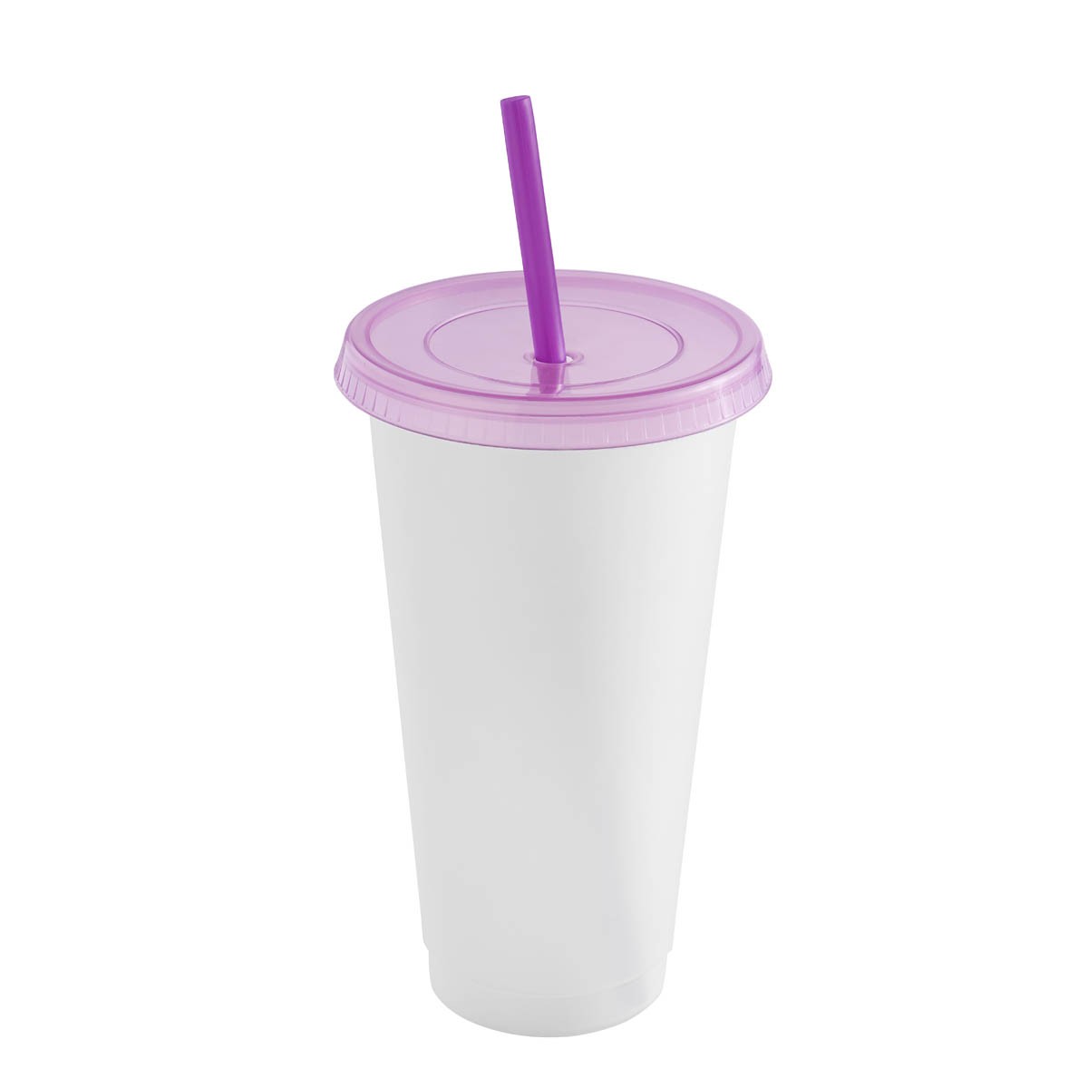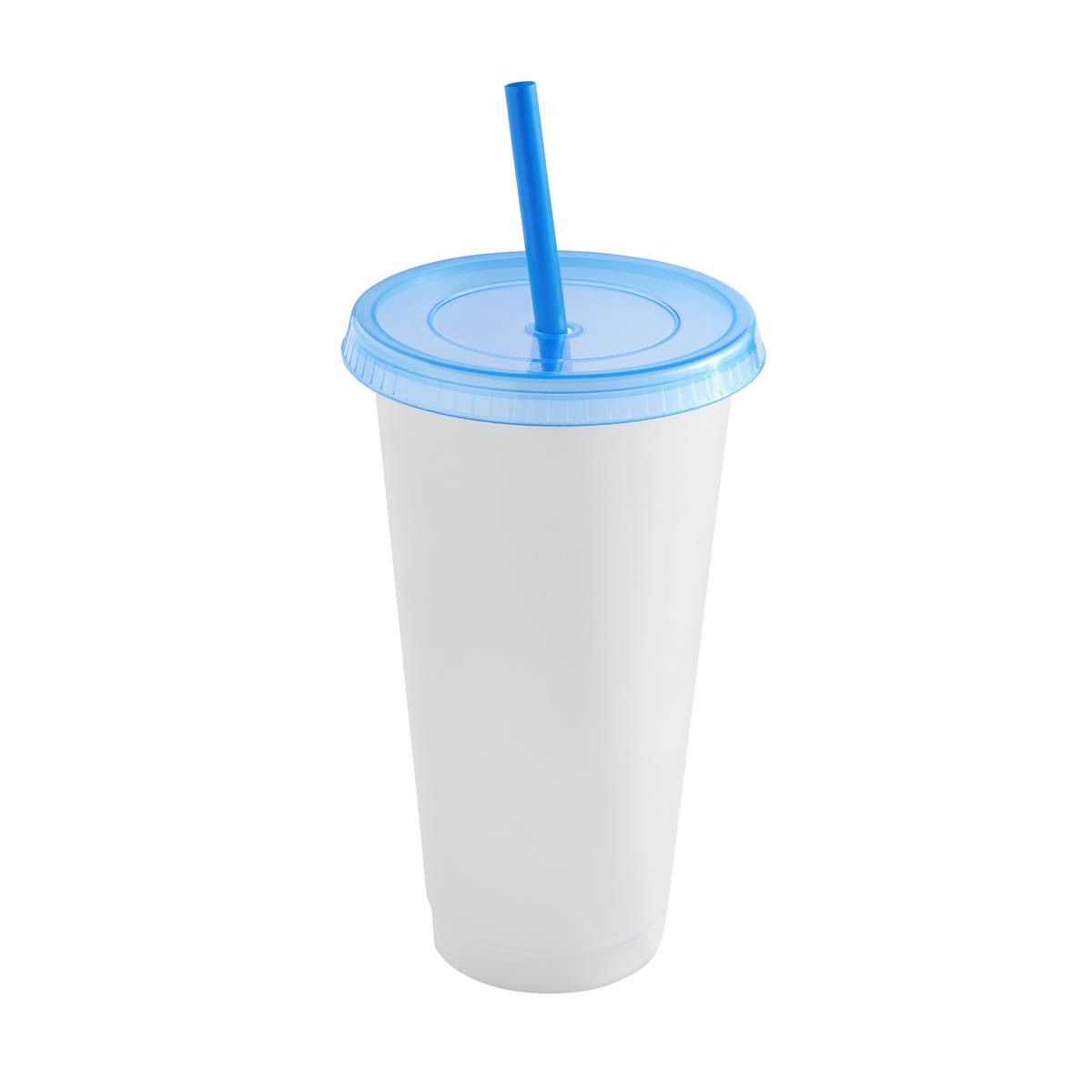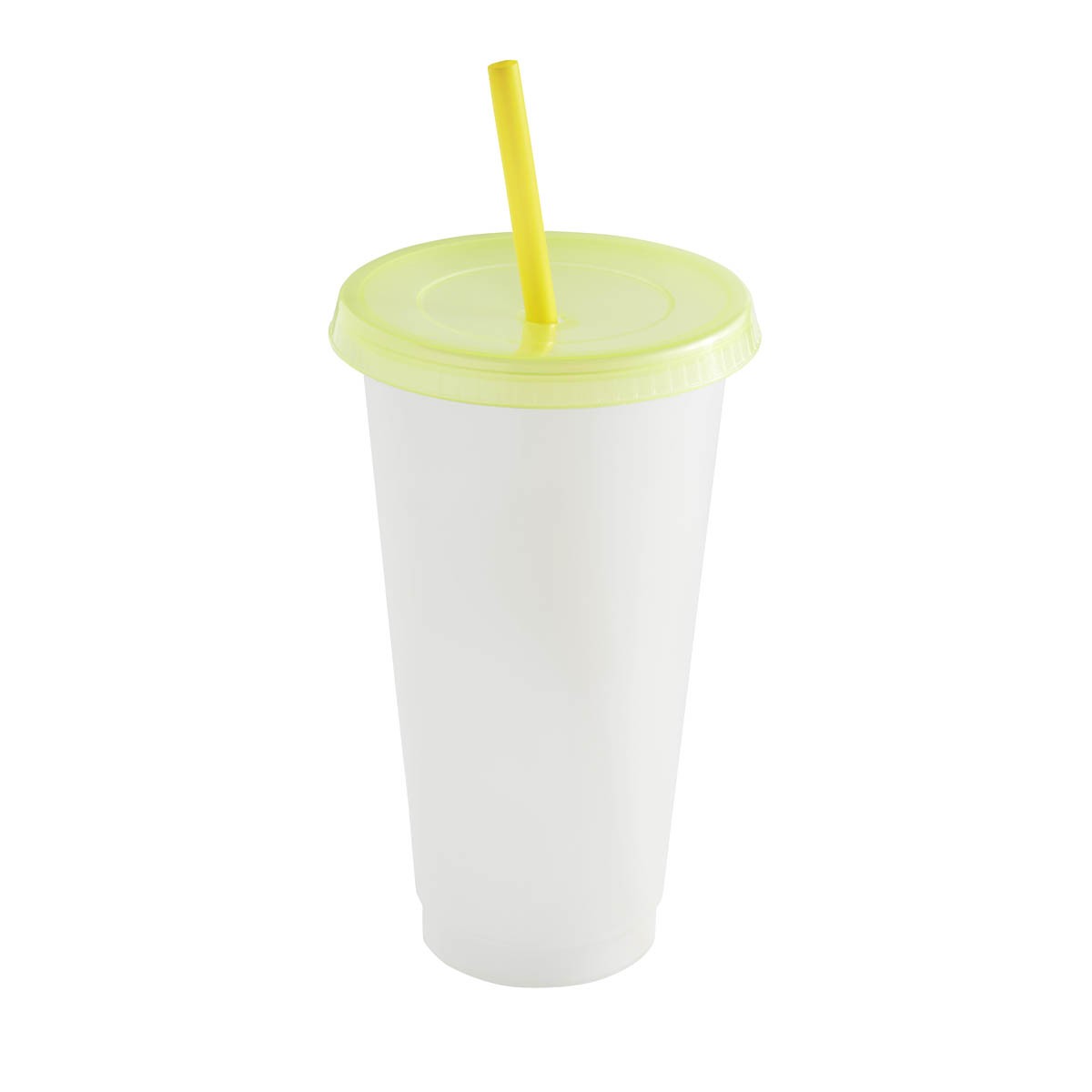 Vaso de plástico de una pared. Añade fantasía y diversión, con el cambio de color al llenar con bebidas frías. Su tapa y el popote coinciden con el tono que el vaso revela al enfriarse, creando un conjunto armonioso y atractivo. Perfecto para quien