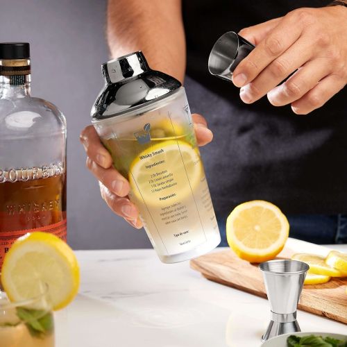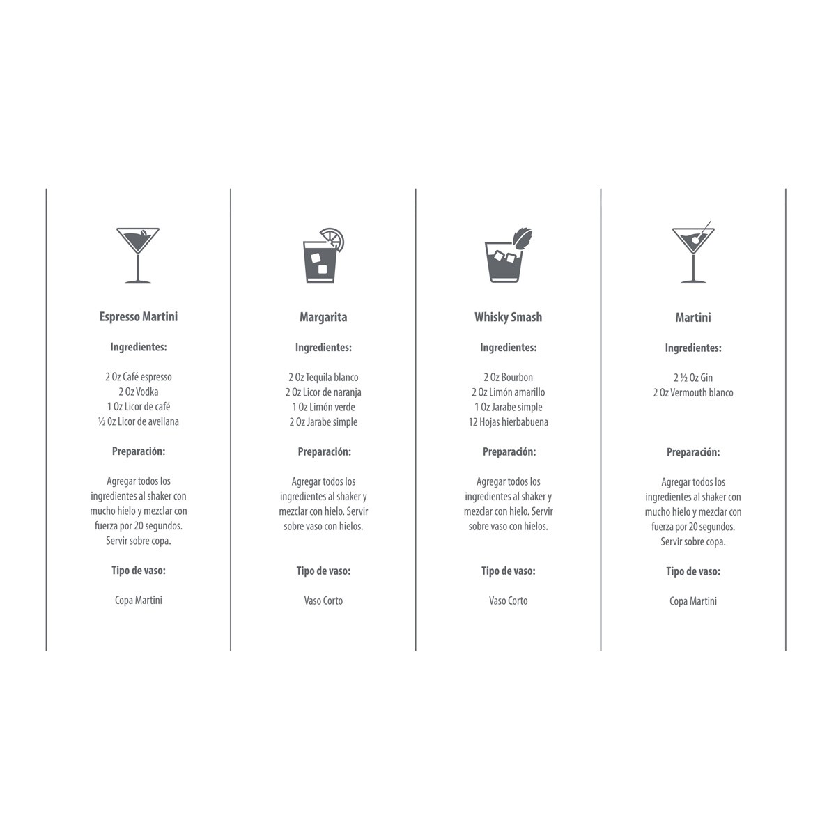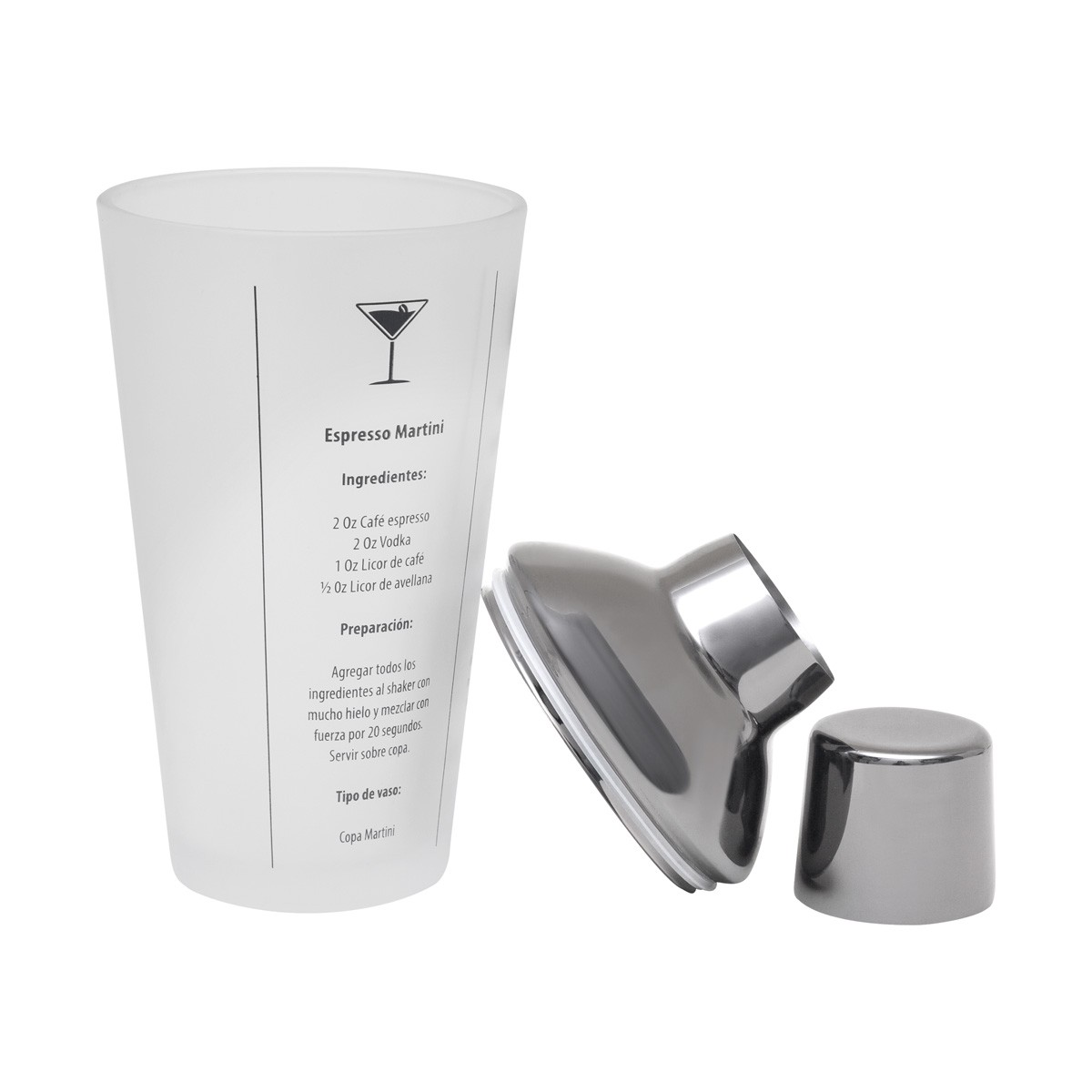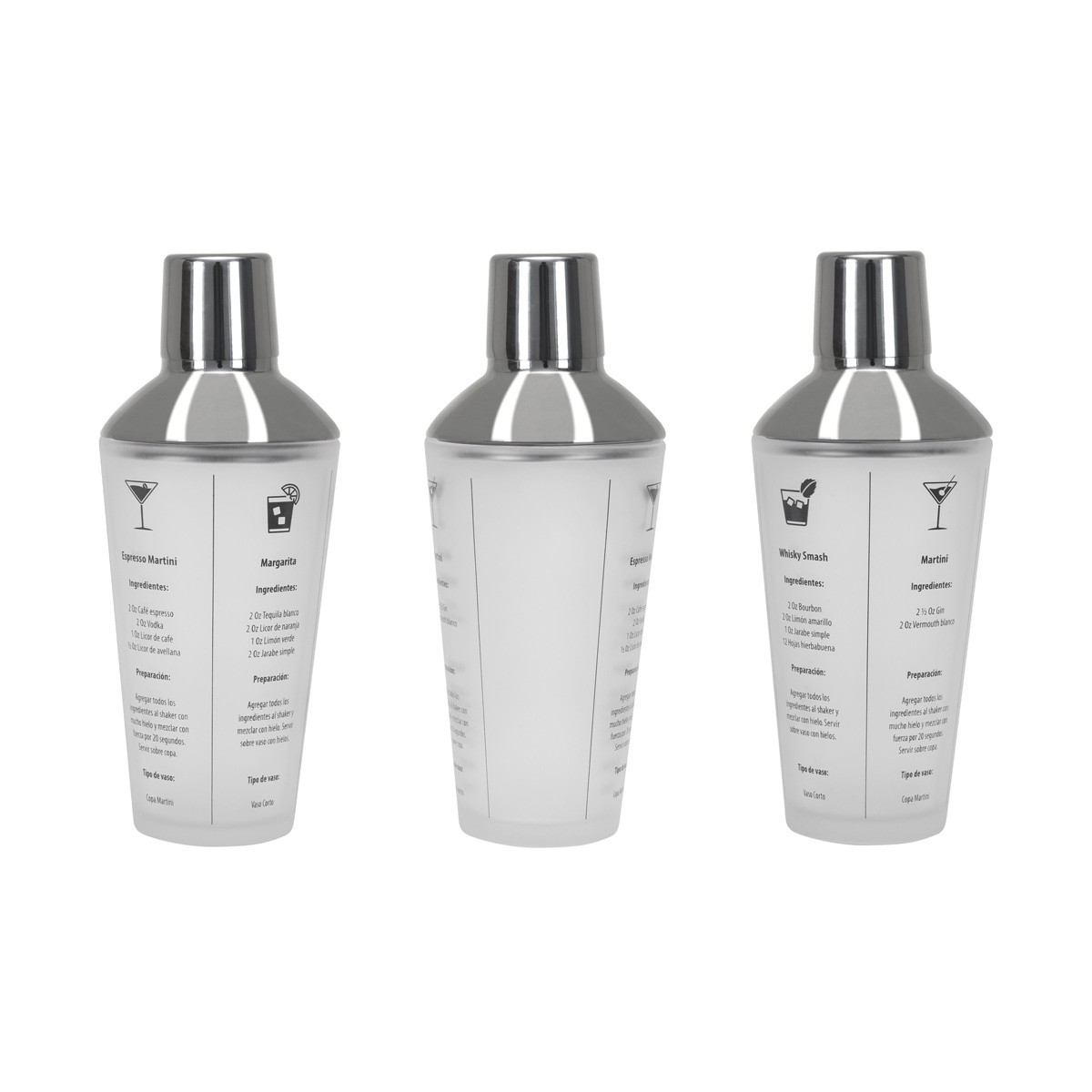 Shaker de cristal con 4 recetas incluidas. Conviértete en el barman perfecto con este shaker diseñado para facilitar la preparación de cócteles profesionales en casa, guiándote paso a paso para crear bebidas como un experto. Podrás preparar un expr