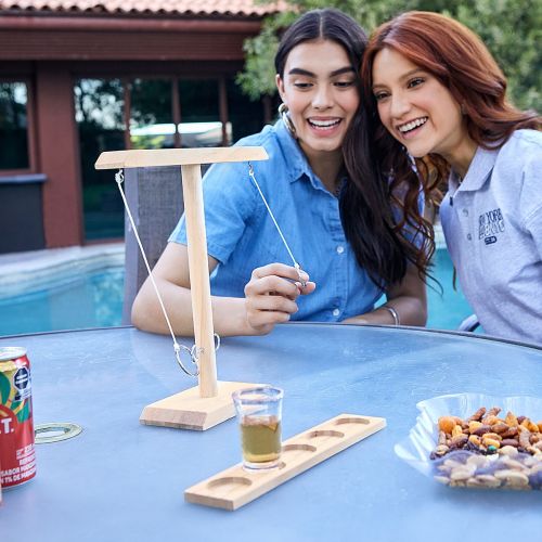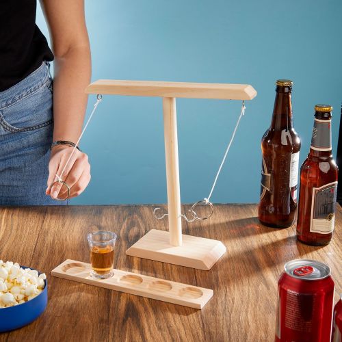 Lleva la diversión a otro nivel con este emocionante juego de destreza para dos jugadores. El objetivo es simple pero desafiante: cada jugador debe balancear su aro e intentar fijarlo en el gancho. Si lo logra, el shot se moverá hacia su oponente. El juga