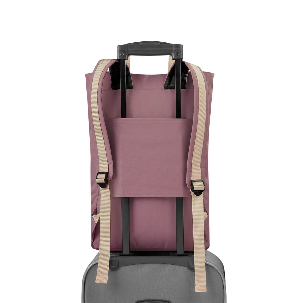 Mochila estilo casual. Compartimento principal con cierre y separador para laptop de hasta 14''. En la parte frontal dispone de un bolsillo con cierre vertical que lo hace funcional para llevar accesorios más pequeños y además le aporta un toque de