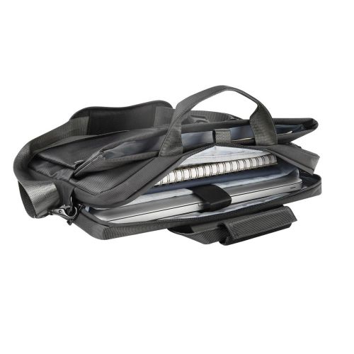 Portafolio ejecutivo con múltiples bolsillos organizadores, ideal para llevar todo lo necesario en un solo accesorio. Su bolsillo principal con cierre, permite guardar una laptop de hasta 15''. Bolsillo frontal, con cierre de velcro y broche de plástico,