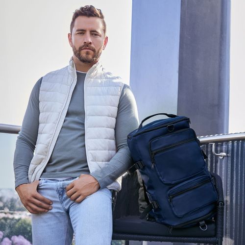 Mochila con función de maleta. Bolsa principal con cierre. Compartimento interno para laptop de 17. Bolsillo interior resistente al agua, bolsillo inferior con espacio y cierre para calzado. 2 bolsillos laterales. Compartimento trasero para ocultar asas.