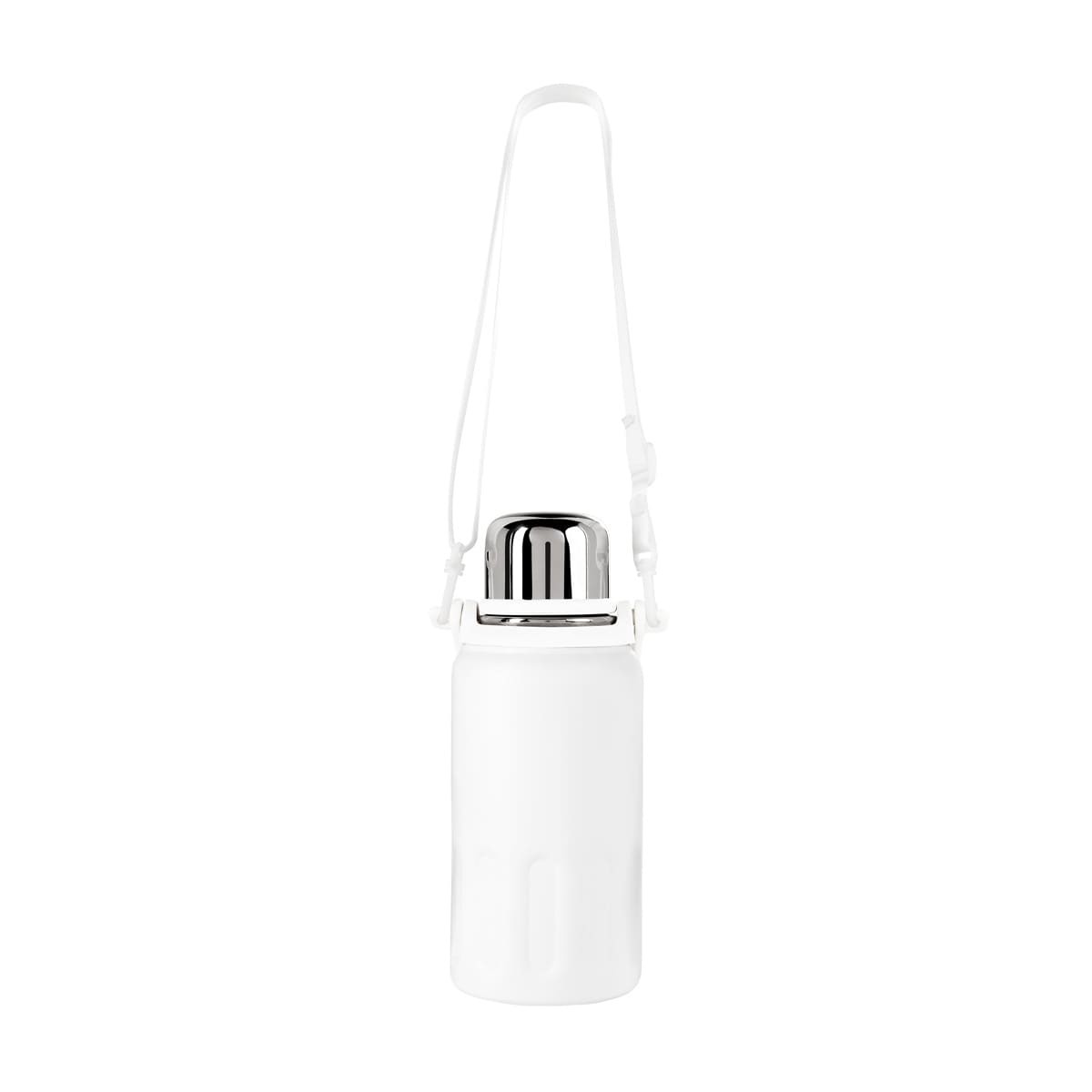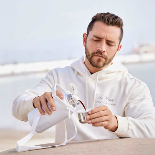 Termo doble pared. Cerrado al vacío. Pared interna y externa acero inoxidable y cuerpo con terminado tipo rugoso. Tapa de plástico con sistema de rosca, boquilla y botón de seguridad para mantener cerrado y sin derrames, incluye sobretapa metálica de rosc
