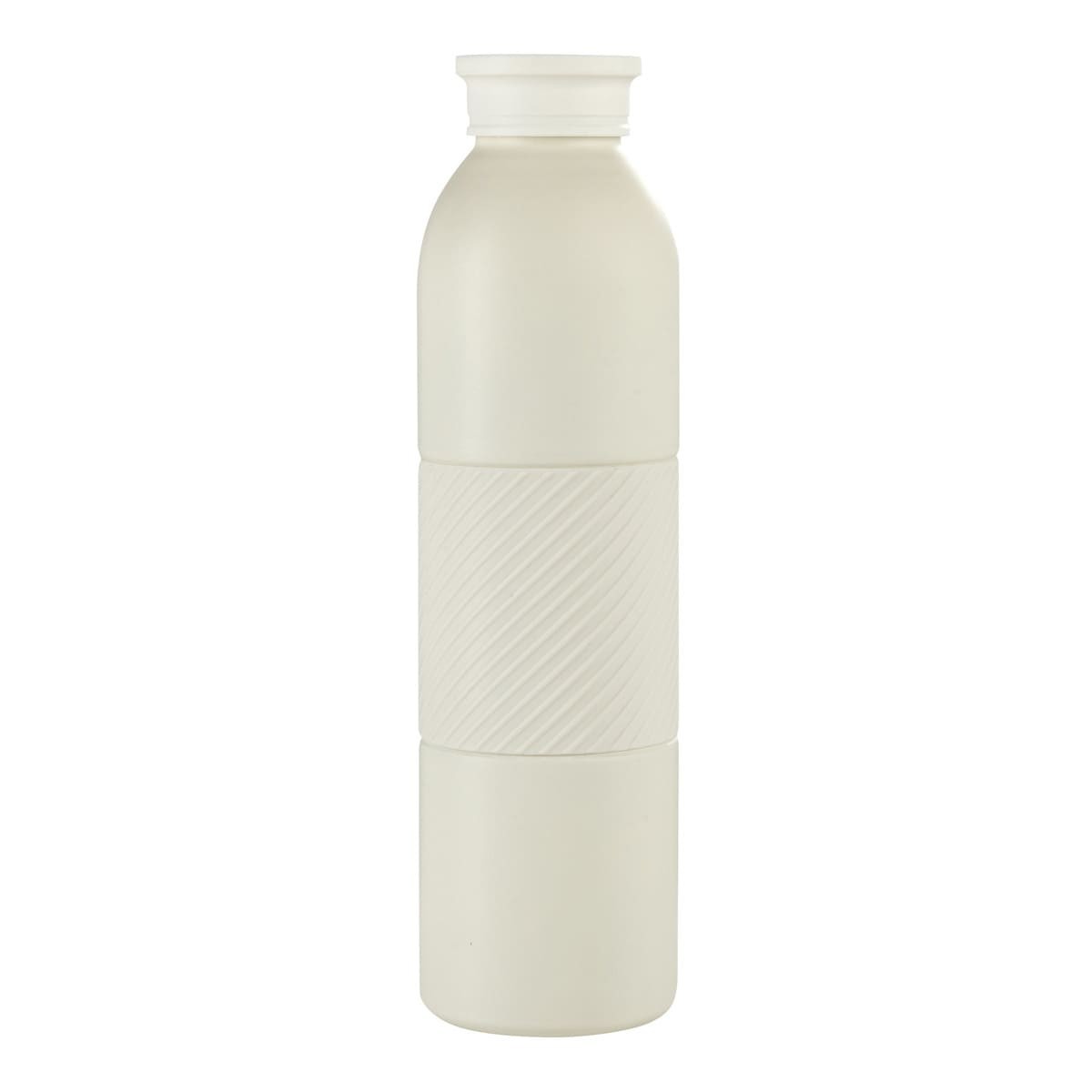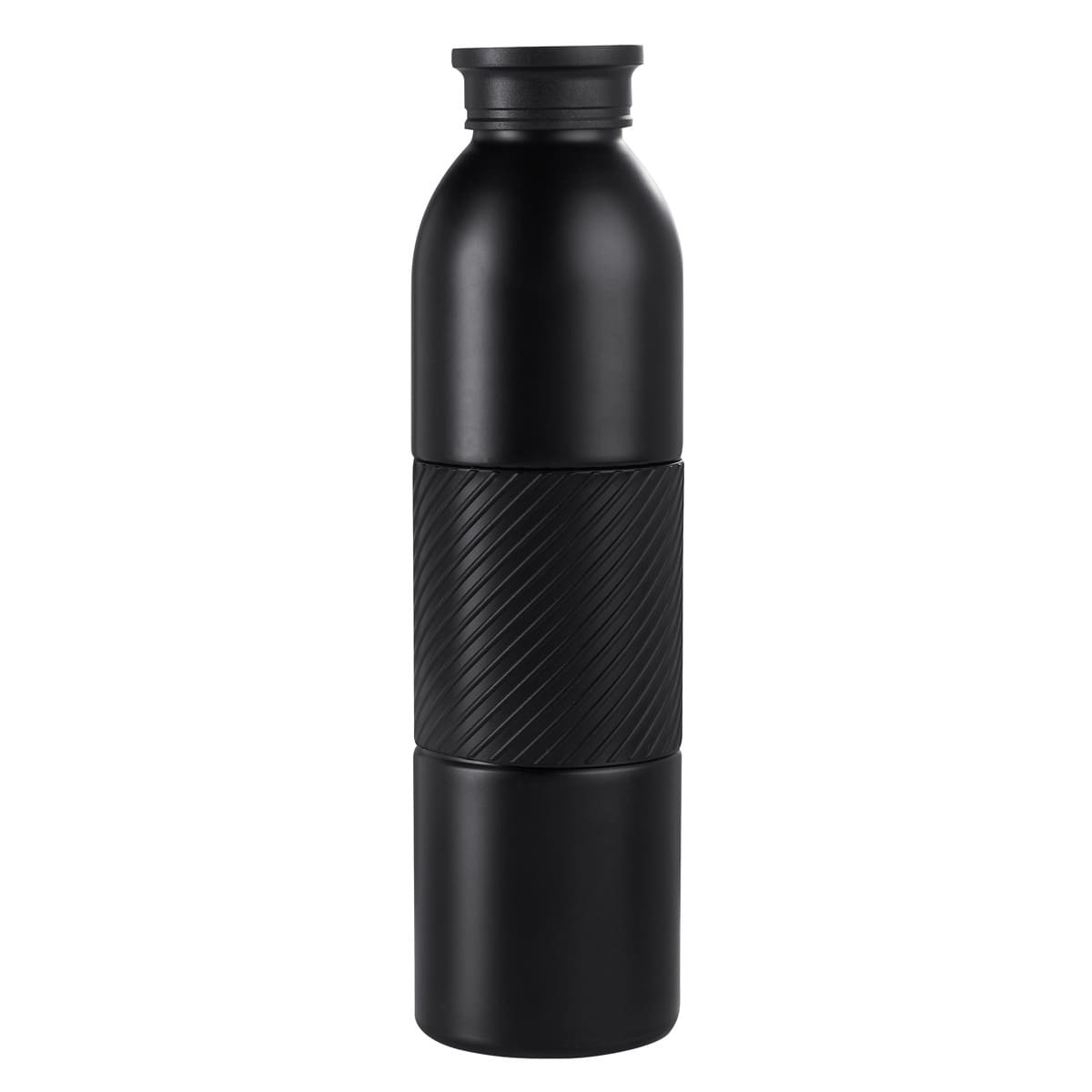 Termo doble pared. Cerrado al vacío. Pared interna y externa acero inoxidable. Tapa de plástico con sistema de rosca. Incluye una manga de silicón texturizado, que le permite tener un mejor agarre. Mantiene la temperatura caliente por 10 hrs y la temperat