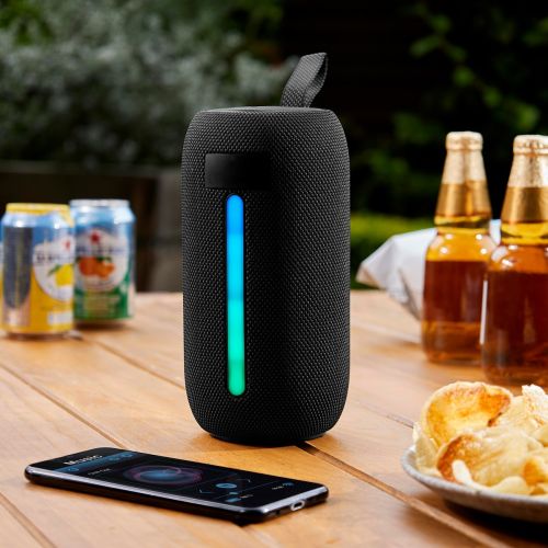 Bocina con tecnología bluetooth 5.3. Potencia 10 W. Batería recargable con capacidad de 1,500 mAh que otorga un tiempo de reproducción de 3 a 5 horas. Alcance de conexión de 10 metros. Incluye iluminación LED con botón independiente para cambiar o ajustar