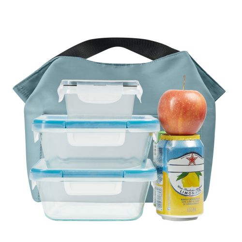 Lonchera con interior plastificado. Compartimento principal con cierre de velcro y un bolsillo frontal para llevar snacks adicionales o pequeños utensilios. Su diseño, la convierte en un modelo muy cómodo para almacenar tus alimentos y bebid