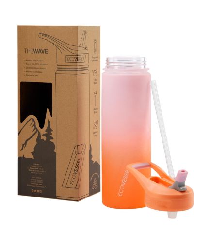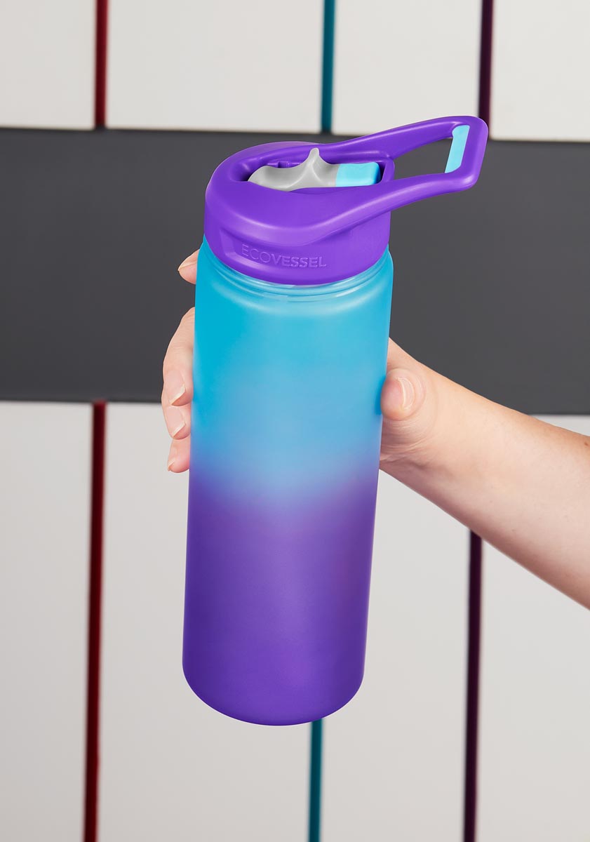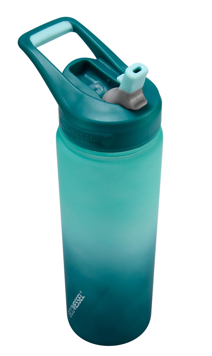 Cilindro hecho de plastico Eastman Tritan™ de larga duracion y libre de BPA, BPS y ftalatos. Incluye asa de transporte con un agarre comodo y suave al tacto, una boquilla abatible para hidratarse y un popote de silicon desmontable para facilitar la limpie