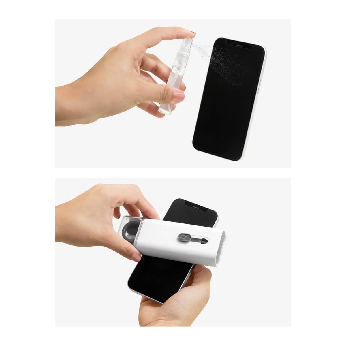 Kit de limpieza para electronicos, gadgets, celulares y mas. Incluye 5 herramientas basicas para mantener tus accesorios favoritos libres de suciedad. Cepillo plegable 3 en 1 para limpiar auriculares. Equipado con punta de silicon, cepillo de esponja y mi