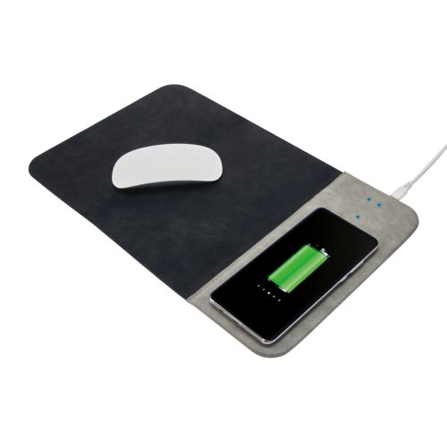 Mouse pad con cargador inalambrico de 10W (Carga rapida). Incluye 3 LEDs indicadores de carga y cable auxiliar tipo C de 1m.