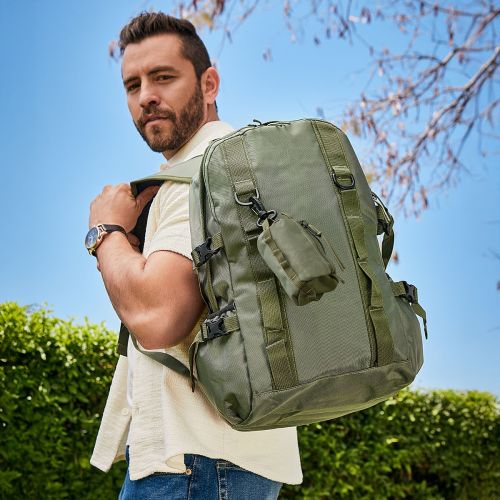 Mochila de viaje con diseno deportivo. Su bolsillo principal con cierre incluye un compartimento para laptop de hasta 15’’ y un bolsillo de malla para organizar tus accesorios. En su exterior, agrega un amplio bolsillo frontal y dos bolsillos laterales. S