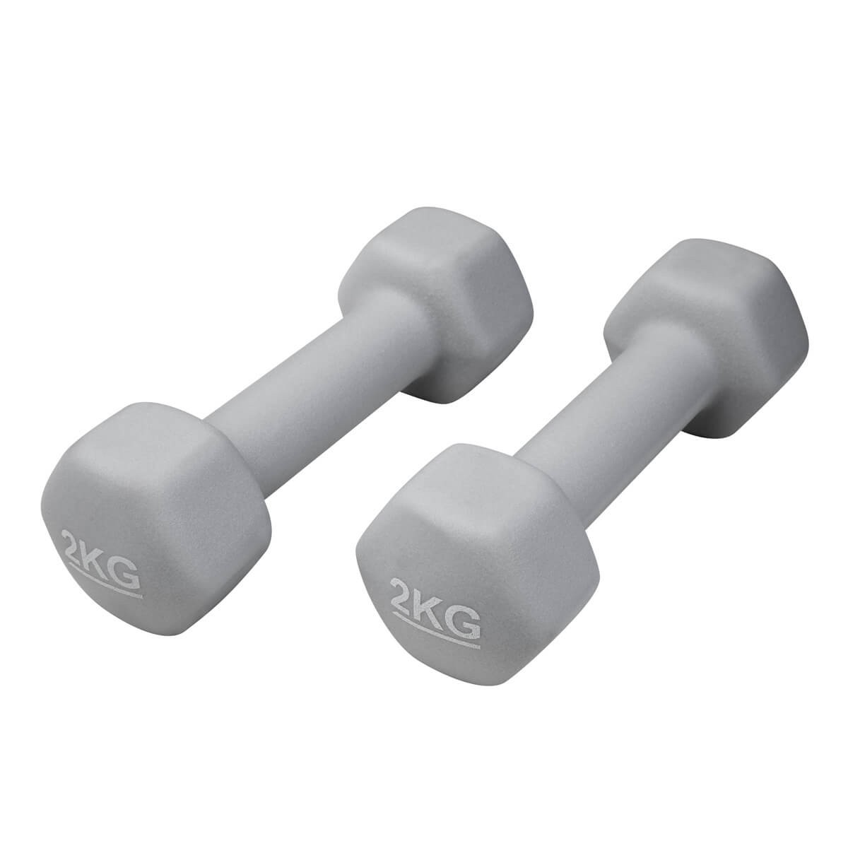 Par de mancuernas de 2 kg cada una. Su diseno compacto y ergonomico garantiza un agarre comodo gracias a su recubrimiento de PVC. Ademas, incluye una practica bolsa con jareta para transportarlas y almacenarlas facilmente, permitiendote entrenar en casa,