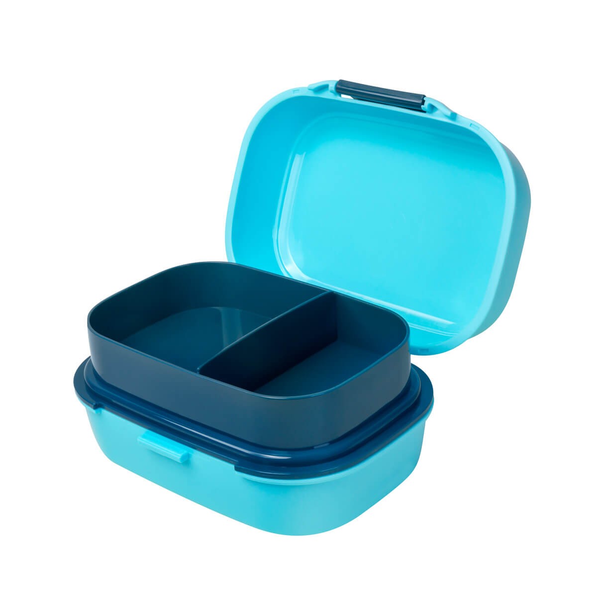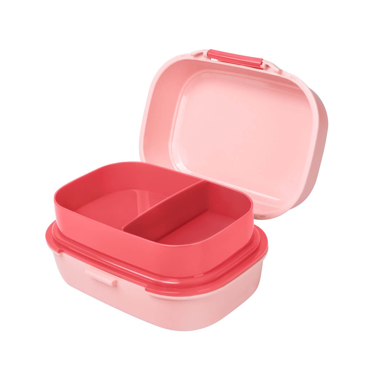 Set escolar de lonchera y cilindro. El cilindro es de una pared de plastico, tapa con sistema de rosca y sobretapa para cubrir la boquilla, ideal para evitar derrames. La lonchera de plastico tiene una division interior removible con un tamano ideal para
