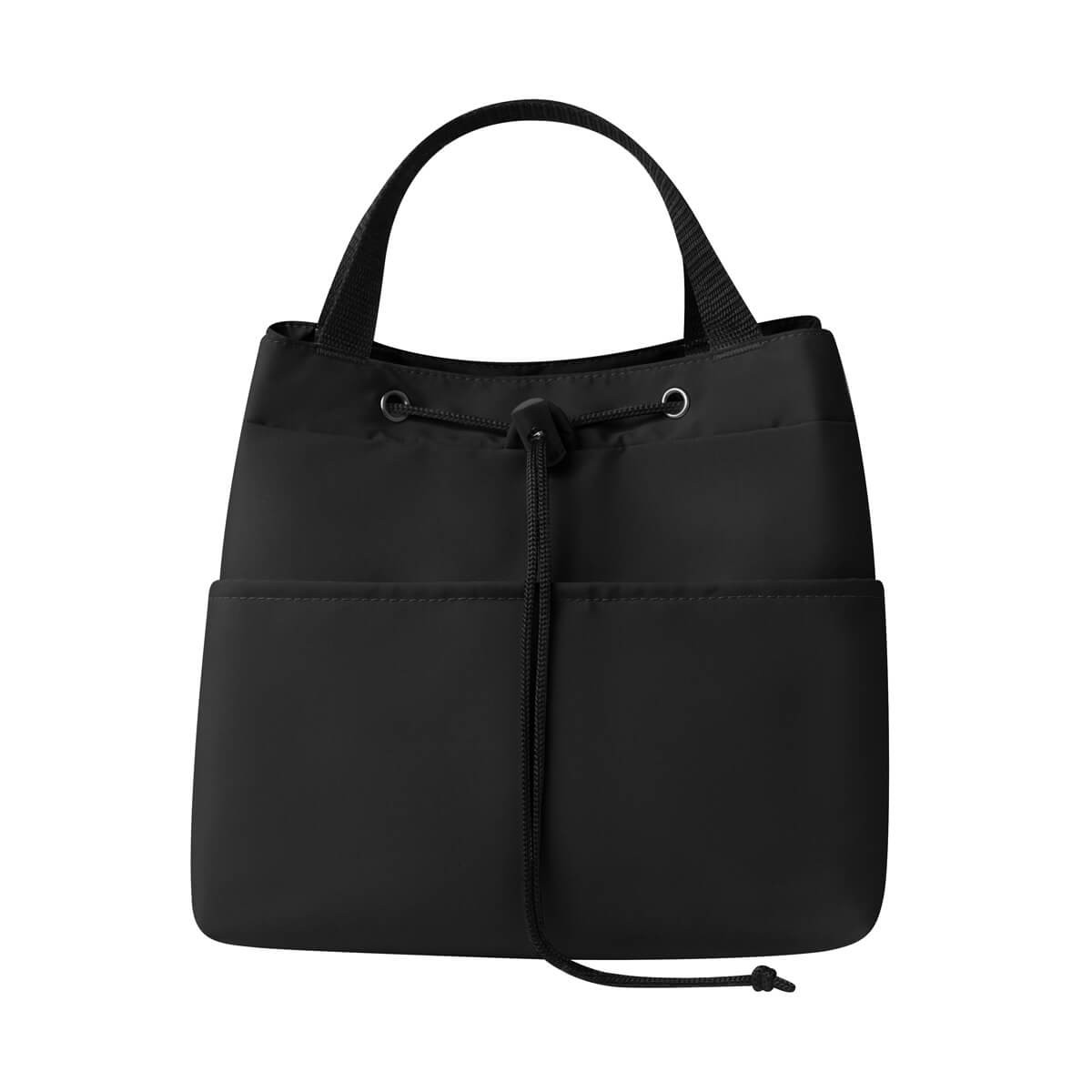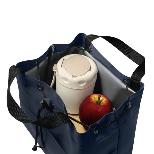 Lonchera con interior plastificado. Su compartimento principal cuenta con un cierre tipo jareta, ideal para ajustar a varios tamanos, segun cada necesidad. Su bolsillo frontal permite llevar accesorios pequenos y complementar tu lunch. Ideal para la escue