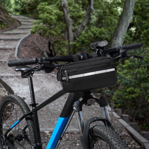 Bolsa multifuncional para bicicleta y resistente al agua, disenada para un estilo de vida activo. Se adapta facilmente al cuadro de tu bicicleta o puede usarse como bolsa crossbody para mayor versatilidad. Ofrece almacenamiento practico con un bolsillo fr