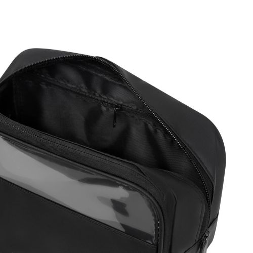 Neceser de poliester resistente al agua. Incluye una mica PVC en el compartimento frontal para una facil visualizacion de su contenido. Dos compartimentos amplios y multiples bolsillos internos para mantener todo perfectamente ordenado. Su asa lateral fac