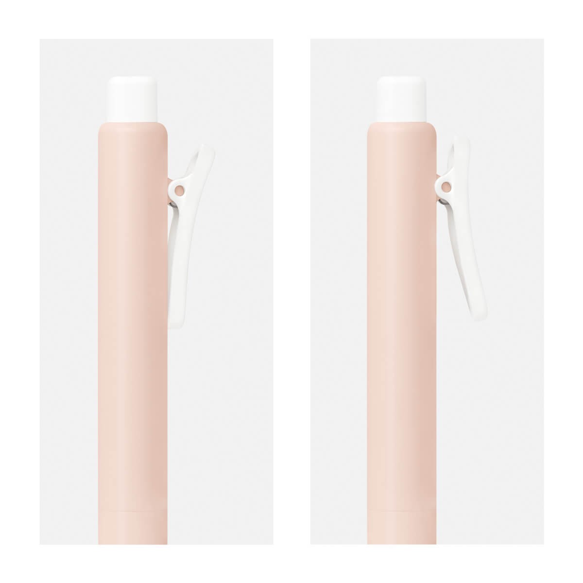 Boligrafo de plastico con mecanismo pulsador. Su diseno destaca formas suaves y redondeadas. Agrega un clip con funcion de pinza que aporta un toque moderno y minimalista.