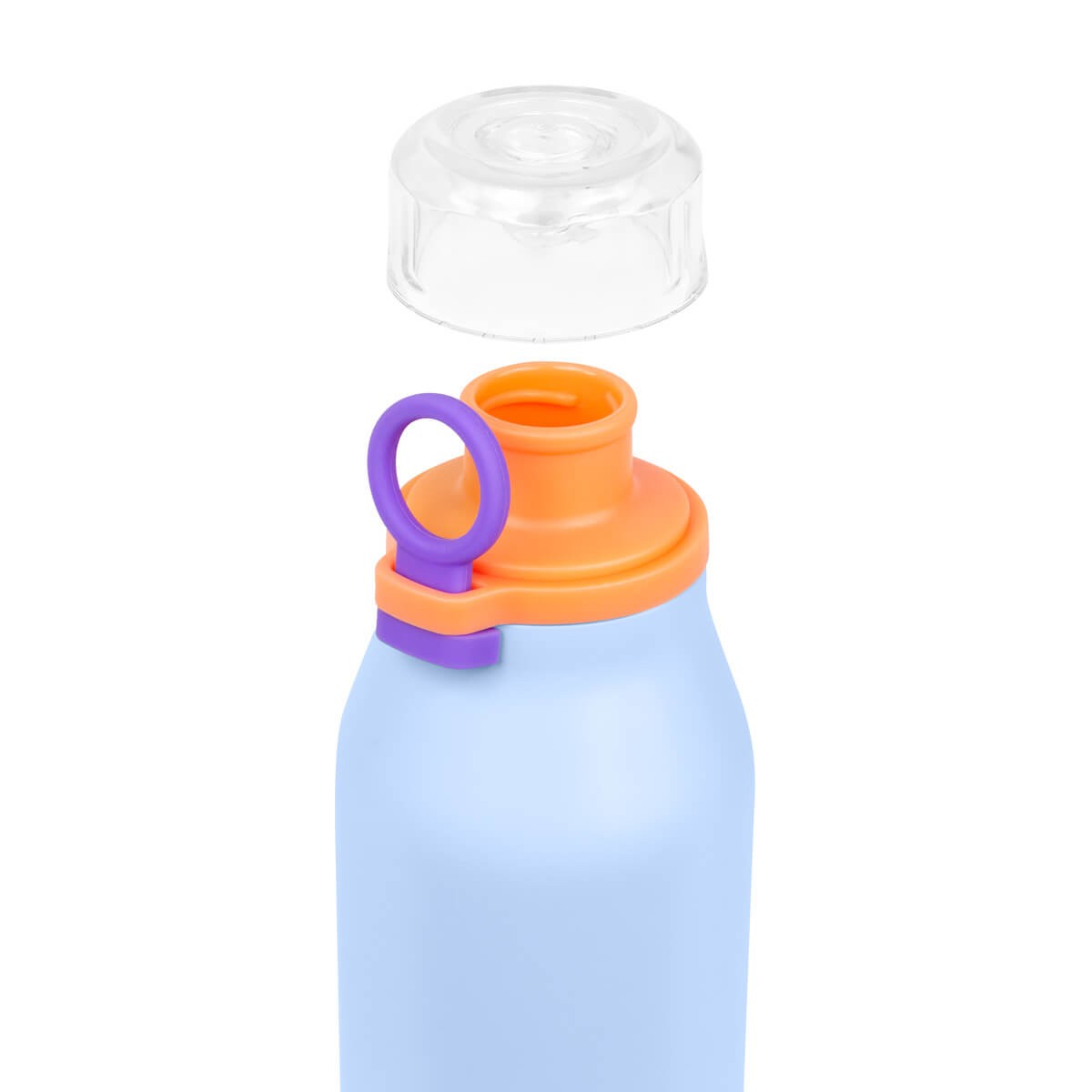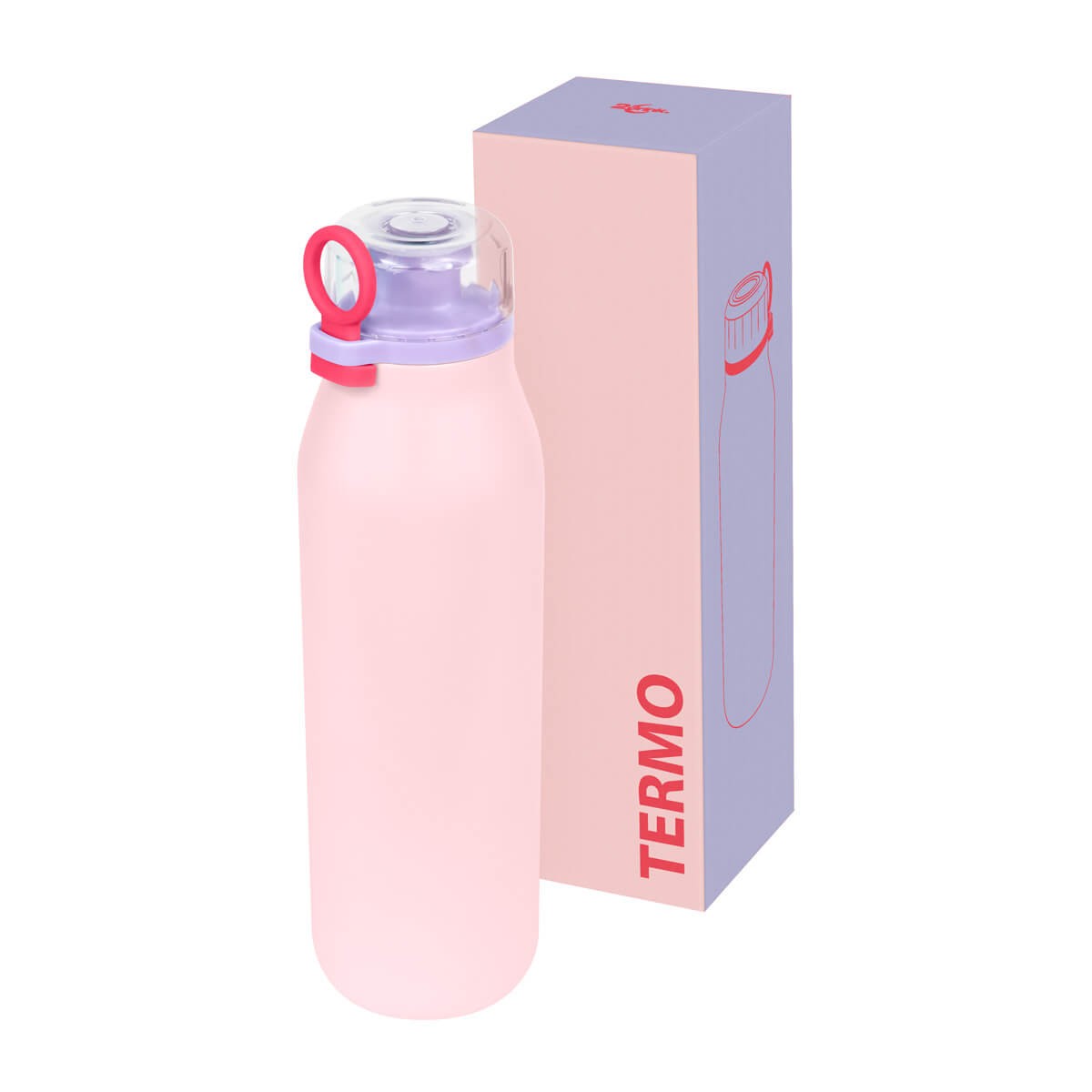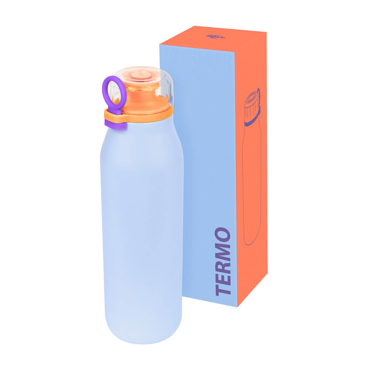 Termo doble pared. Cerrado al vacio. Pared interna y externa de acero inoxidable. Tapa son sistema de rosca y amplia boquilla para beber facilmente o verter con mayor facilidad tus bebida favoritas. Incluye una pequena asa de silicon que favorece su trans