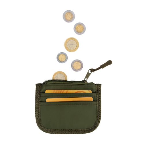 Monedero compacto con diseno funcional. Incluye tres compartimentos para tarjetas, dos al frente y uno posterior. Compartimento principal con cierre de facil agarre. Ideal para llevar tus tarjetas, monedas y billetes bien organizados.
