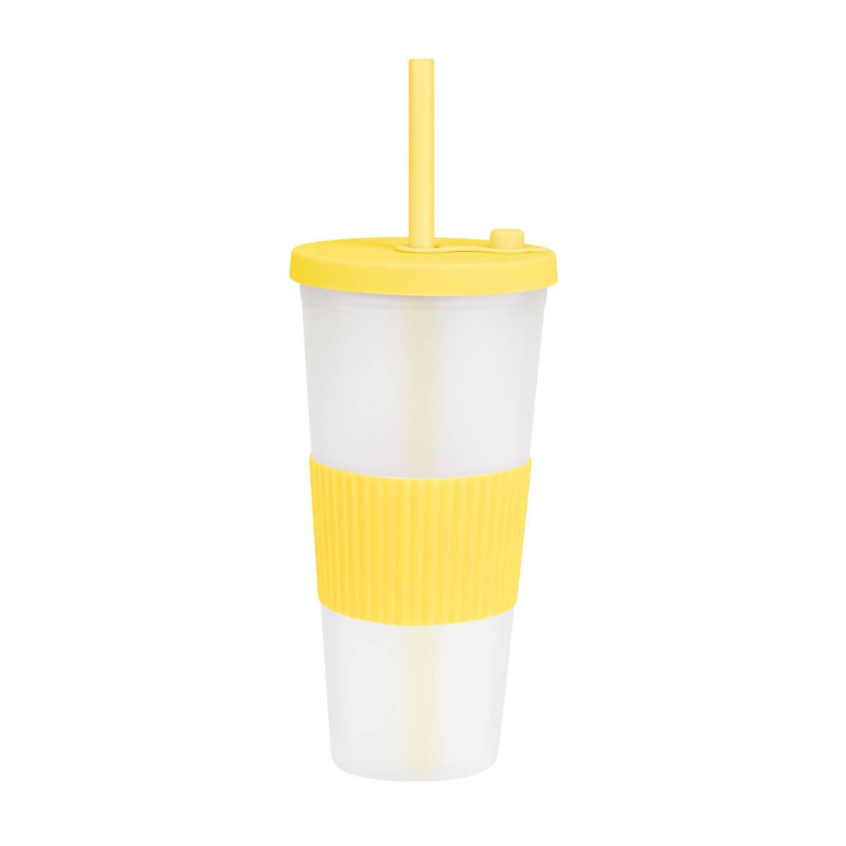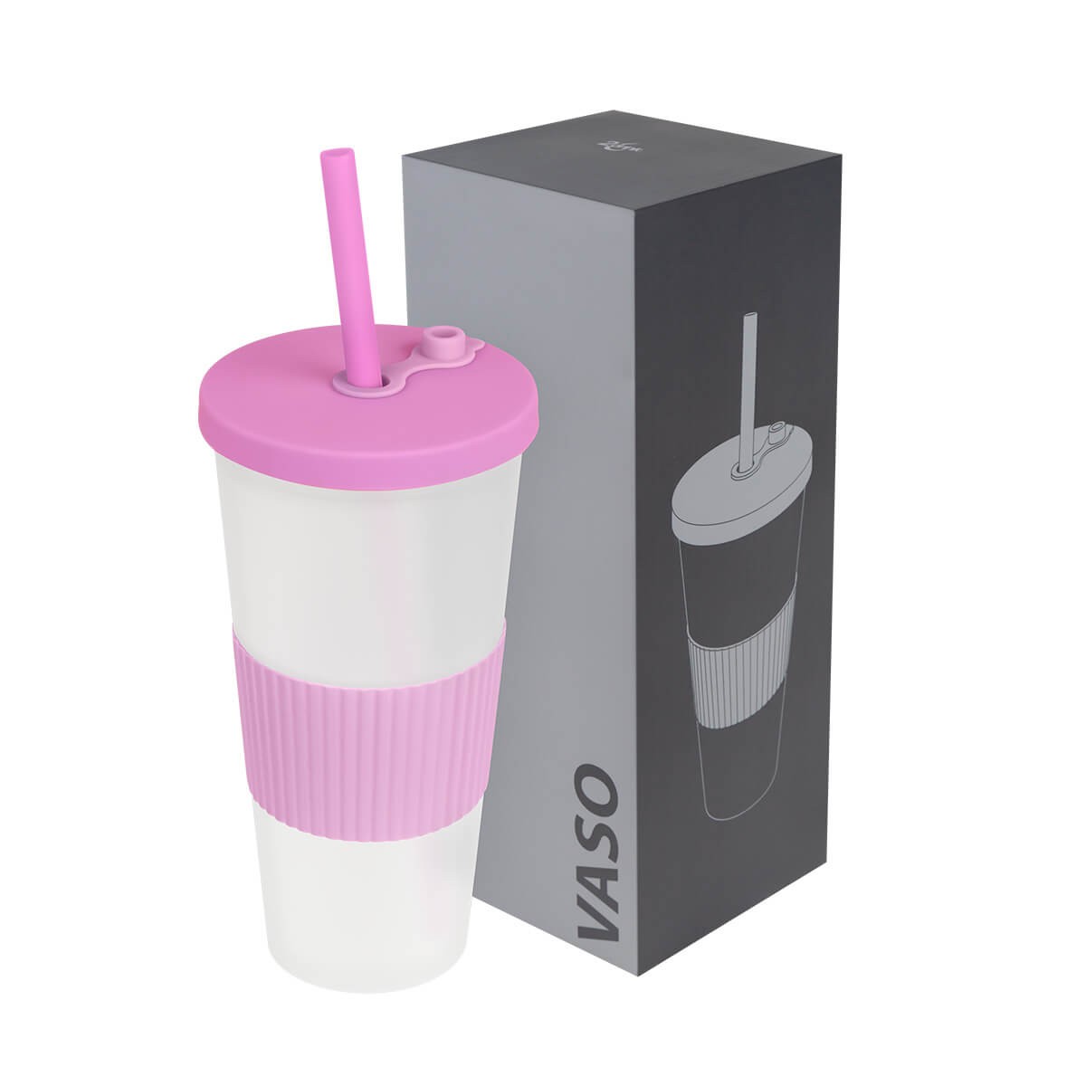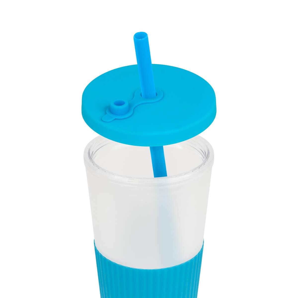 Vaso doble pared. Pared interna y externa de plastico. Tapa de plastico con sistema de rosca. Incluye popote. Cuerpo frosty con terminado suave. Su diseno con manga de silicon antideslizante garantiza un agarre comodo y seguro. Capacidad 22 Oz. Base de 6.
