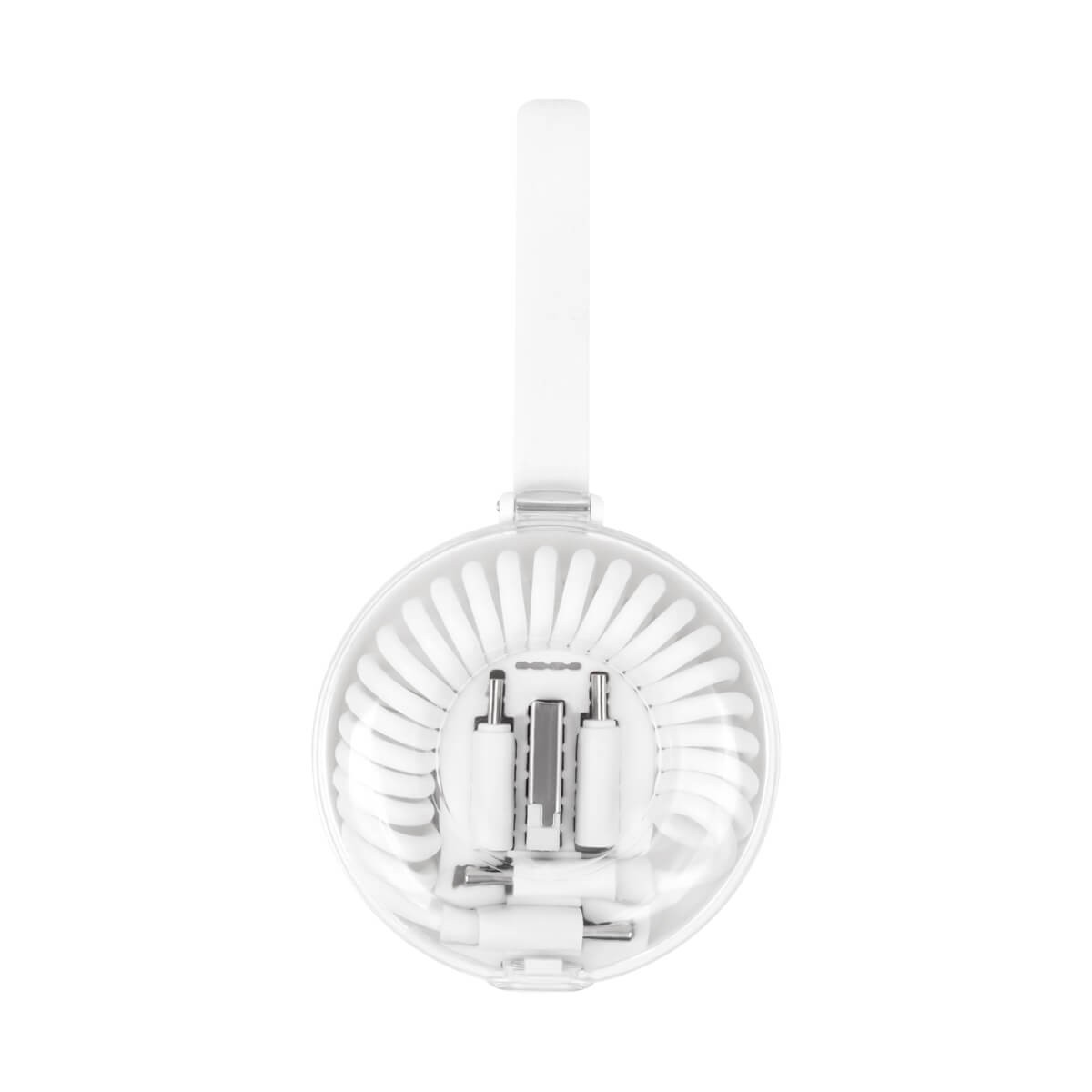 Cable de carga rápida 4 en 1 con doble conexión tipo C. Incluye adaptadores intercambiables para puertos micro USB, lightning (8 pines) y USB, garantizando compatibilidad con múltiples dispositivos. Su práctico estuche mantiene todo organizado, evita enre