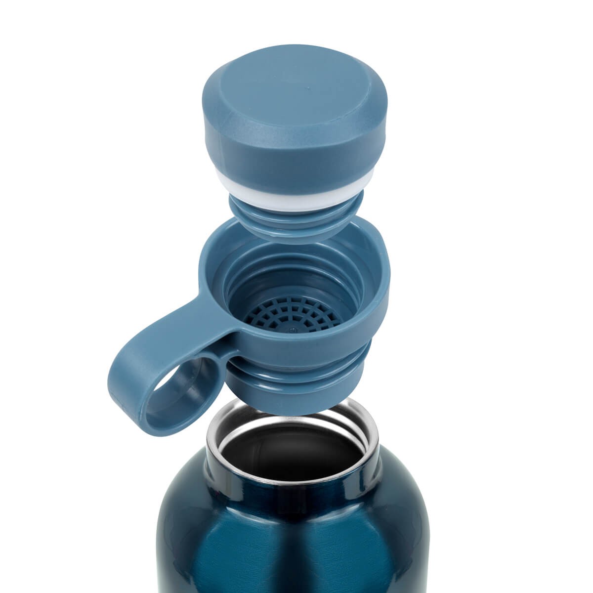 Termo doble pared, cerrado al vacío. Pared interna y externa de acero inoxidable. Incluye tapa de plástico con doble sistema de rosca, además de incorporar un filtro para preparar té o infusiones. Su asa integrada facilitará que los lleves a todos lados,