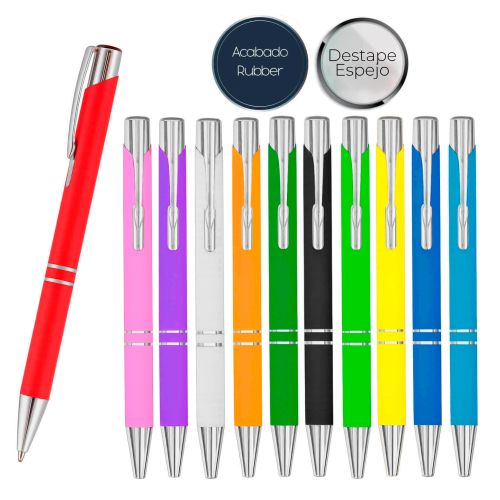 Bolígrafo metálico con acabado rubber; clip y mecanismo de click.