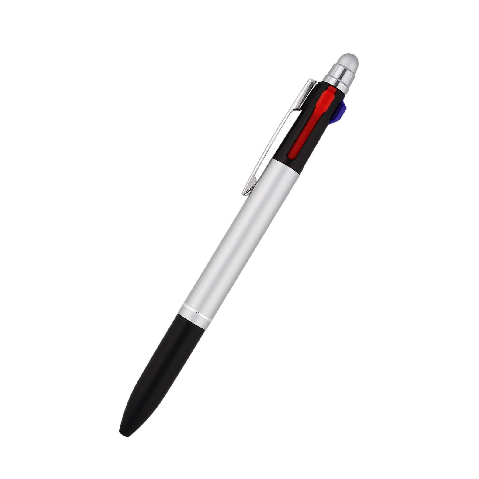 Bolígrafo 3 en 1 con clip metálico y goma touch screen; tinta negra; roja y azul.