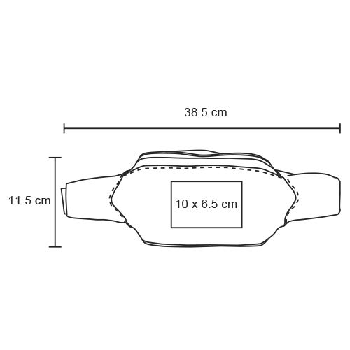 Cangurera de poliéster con dos compartimentos; cinta ajustable a la cintura y seguro de presión.