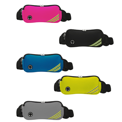 Cangurera deportiva con 2 compartimentos; doble cierre; cinturón ajustable y salida para audífonos.