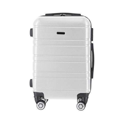 Maleta de plástico para viaje; con doble rueda giratoria; asa metálica retráctil y candado de seguridad.