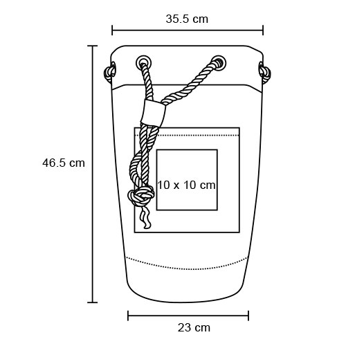 Mochila de yute con forro; 2 compartimentos en la parte interior; correa no ajustable y cordones de algodón.