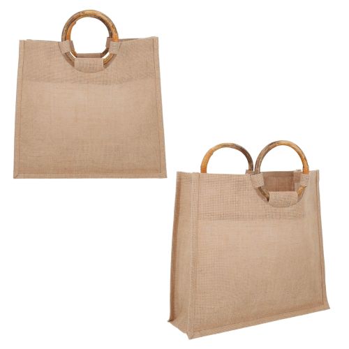Bolsa de yute con doble asas de madera y fuelle.