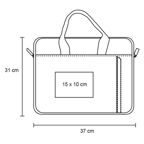 Portafolio de poliéster con compartimento principal de interior afelpado; 1 compartimento frontal; carry on y 2 asas.