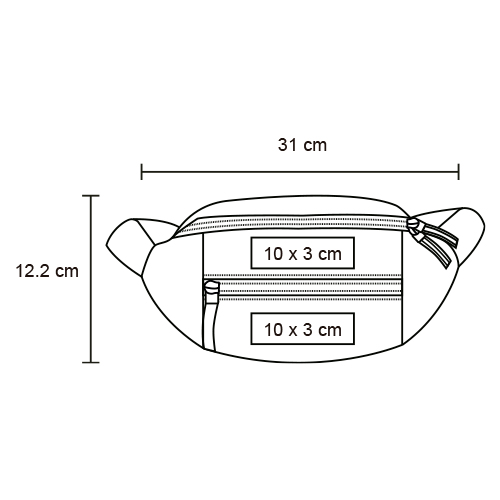 Cangurera antirreflejante que incluye; 1 compartimento principal con compartimento interno; 1 compartimento frontal; correa ajustable y broche de seguridad.