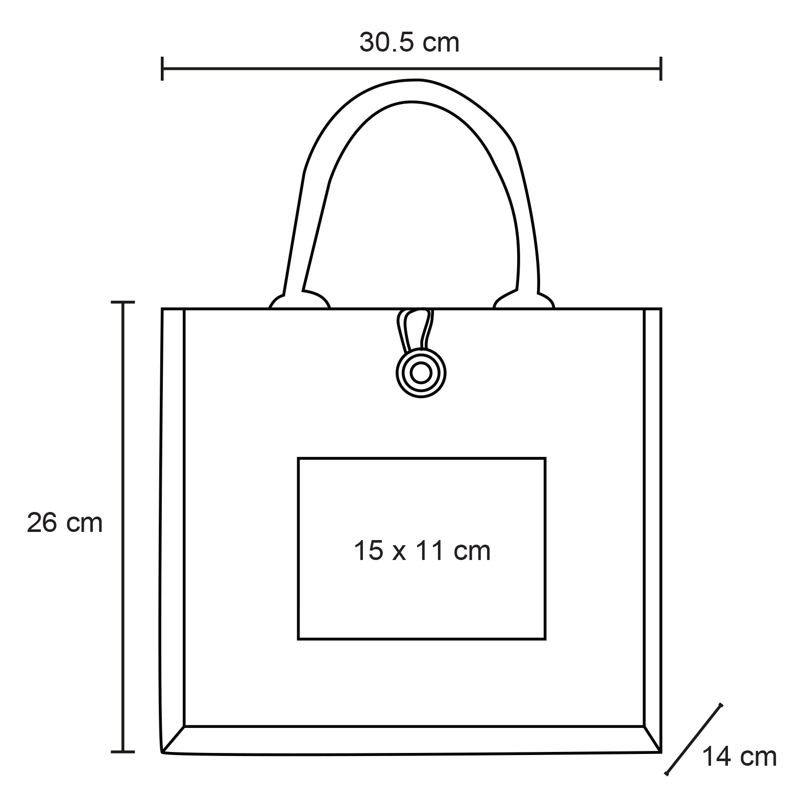 Bolsa de loneta laminada con yute de 1 compartimento con botón para cierre y asas.