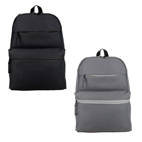 Mochila con 3 compartimentos; 1 compartimento principal 2 compartimentos frontales; 2 mallas laterales; respaldo; tirantes acolchaos y asa superior.