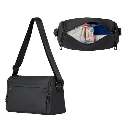 Maleta deportiva con compartimento principal; bolsillo interno con cierre; bolsa frontal; dos bolsillos laterales y correa ajustable.