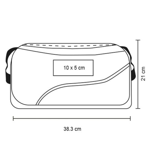 Maleta deportiva de poliéster con compartimento principal y correa ajustable.