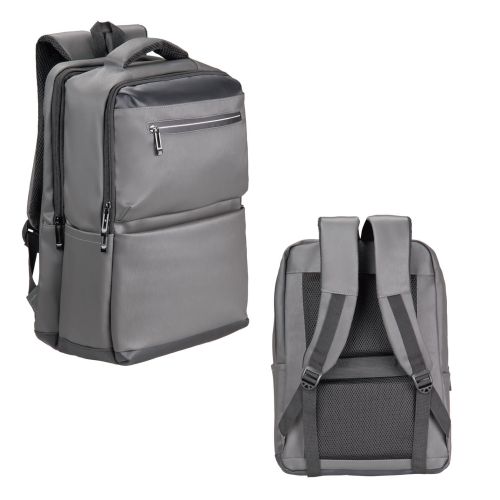 Mochila con compartimento principal con organizador interno y bolsa con cierre; compartimento trasero con porta laptop de 16.5; dos bolsas frontales con cierre; dos bolsas laterales; respaldo acolchado con banda carry-on y asa superior."