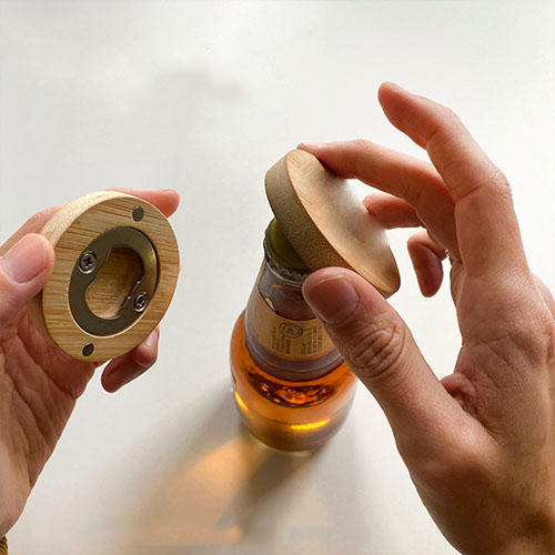 Destapador de bambú con imán en la base.